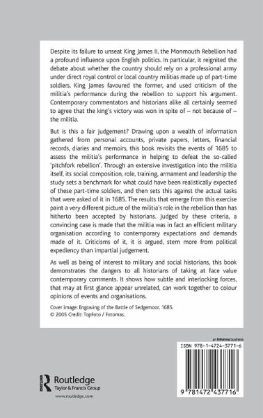Drawing upon private papers, letters, financial records, diaries and memoirs, this book revisits the Monmouth Rebellion of 1685 to assess the militia's performance in helping to defeat the 'pitchfork rebellion'. The study sets a benchmark for what could have been realistically expected of these part-time soldiers, and then sets this against the actual tasks that were asked of it. The results that emerge from this exercise paint a very different picture of the militia's role in the rebellion than has hitherto been accepted by historians.