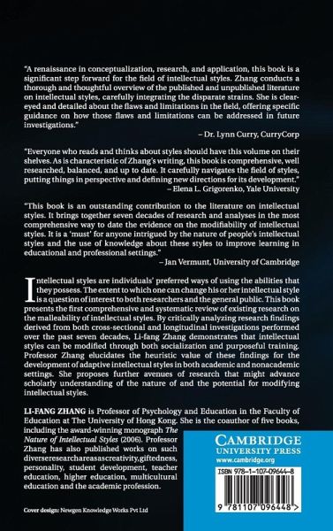 Intellectual styles are individuals' preferred ways of using the abilities that they possess. The extent to which one can change his or her intellectual style is a question of interest to both researchers and the general public. This book presents the first comprehensive and systematic review of existing research on the malleability of intellectual styles. By critically analyzing research findings derived from both cross-sectional and longitudinal investigations performed over the past seven decades, Li-fang Zhang demonstrates that intellectual styles can be modified through both socialization and purposeful training. Professor Zhang elucidates the heuristic value of these findings for the development of adaptive intellectual styles in both academic and non-academic settings. She proposes further avenues of research that might advance scholarly understanding of the nature of and the potential for modifying intellectual styles.