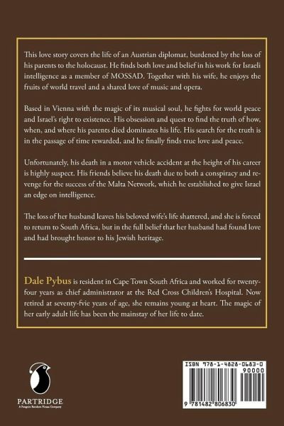 This love story covers the life of an Austrian diplomat, burdened by the loss of his parents to the holocaust. He finds both love and belief in his work for Israeli intelligence as a member of MOSSAD. Together with his wife, he enjoys the fruits of world travel and a shared love of music and opera. Based in Vienna with the magic of its musical soul, he fights for world peace and Israel's right to existence. His obsession and quest to find the truth of how, when, and where his parents died dominates his life. His search for the truth is in the passage of time rewarded, and he finally finds true love and peace. Unfortunately, his death in a motor vehicle accident at the height of his career is highly suspect. His friends believe his death due to both a conspiracy and revenge for the success of the Malta Network, which he established to give Israel an edge on intelligence. The loss of her husband leaves his beloved wife's life shattered, and she is forced to return to South Africa, but in the full belief that her husband had found love and had brought honor to his Jewish heritage.