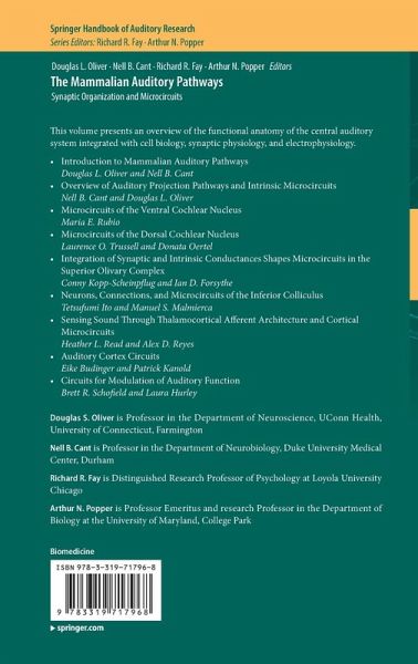 ¿Douglas S. Oliver is Professor in the Department of Neuroscience, UConn Health, University of Connecticut, Farmington Nell B. Cant is Associate Professor Emeritus, Department of Neurobiology, Duke University Medical Center, Durham Richard R. Fay is Distinguished Research Professor of Psychology at Loyola University Chicago Arthur N. Popper is Professor Emeritus and research Professor in the Department of Biology at the University of Maryland, College Park