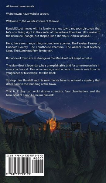 All towns have secrets. Weird towns have weirder secrets. Welcome to the weirdest town of them all. Randall Stout moves with his family a to new town, and soon discovers that he's now living right in the center of the Indiana Rhombus. (It's similar to the Bermuda Triangle, but shaped like a rhombus. And in Indiana.) Here, there are strange things around every corner: The Faceless Farmer of Hubbard County. The Courthouse Phantom. The Wallace Point Mystery Spot. The Luminous Pork Tenderloin. But none of them are as strange as the Man-Goat of Camp Cornelius. The Man-Goat is legendary, he's unexplainable, and for some reason he's in a very bad mood. He's on a rampage, and no one in town is safe from his vengeance or his terrible, terrible smell. To stop him, Randall and his new friends have to unravel a mystery that dates back to the founding of the town. That is, if they can avoid sinister scientists, feral cheerleaders, and the Man-Goat of Camp Cornelius himself!