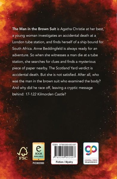 'The Man in the Brown Suit' is Agatha Christie at her best, a young woman investigates an accidental death at a London tube station, and finds herself of a ship bound for South Africa. Anne Beddingfeld is always ready for an adventure. So when she witnesses a man die at a tube station, she searches for clues and finds a mysterious piece of paper nearby. The Scotland Yard verdict is accidental death. But she is not satisfied. After all, who was the man in the brown suit who examined the body? And why did he race off, leaving a cryptic message behind: '17-122 Kilmorden Castle'?