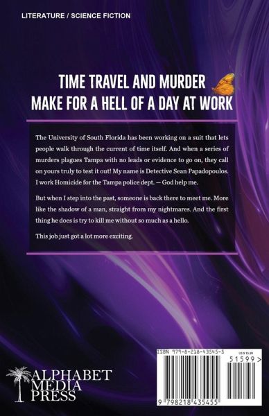 Time travel and murder make for a hell of a day at work. The University of South Florida has been working on a suit that lets people walk through the current of time itself. And when a series of murders plagues Tampa with no leads or evidence to go on, they call on yours truly to test it out! My name is Detective Sean Papadopoulos. I work Homicide for the Tampa Police Dept. - God help me. But when I step into the past, someone is back there to meet me. More like the shadow of a man, straight from my nightmares. And the first thing he does is try to kill me without so much as a hello. This job just got a lot more exciting.