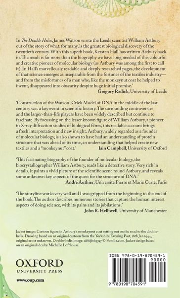 Sir Isaac Newton once declared that his momentous discoveries were only made thanks to having 'stood on the shoulders of giants'. The same might also be said of the scientists James Watson and Francis Crick. Their discovery of the structure of DNA was, without doubt, one of the biggest scientific landmarks in history and, thanks largely to the success of Watson's best-selling memoir 'The Double Helix', there might seem to be little new to say about this story. But much remains to be said about the particular 'giants' on whose shoulders Watson and Crick stood. Of these, the crystallographer Rosalind Franklin, whose famous X-ray diffraction photograph known as 'Photo 51' provided Watson and Crick with a vital clue, is now well recognised. Far less well known is the physicist William T. Astbury who, working at Leeds in the 193s on the structure of wool for the local textile industry, pioneered the use of X-ray crystallography to study biological fibres. In so doing, he not only made the very first studies of the structure of DNA culminating in a photo almost identical to Franklin's 'Photo 51', but also founded the new science of 'molecular biology'. Yet whilst Watson and Crick won the Nobel Prize, Astbury has largely been forgotten. The Man in the Monkeynut Coat tells the story of this neglected pioneer, showing not only how it was thanks to him that Watson and Crick were not left empty-handed, but also how his ideas transformed biology leaving a legacy which is still felt today.