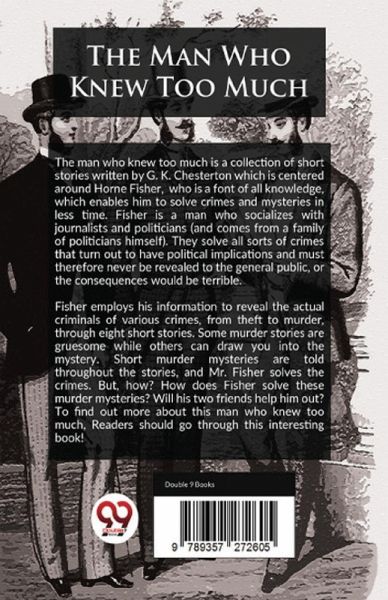 The man who knew too much is a collection of short stories written by G. K. Chesterton which is centered around Horne Fisher, who is a font of all knowledge, which enables him to solve crimes and mysteries in less time. Fisher is a man who socializes with journalists and politicians (and comes from a family of politicians himself). They solve all sorts of crimes that turn out to have political implications and must therefore never be revealed to the general public, or the consequences would be terrible. Fisher employs his information to reveal the actual criminals of various crimes, from theft to murder, through eight short stories. Some murder stories are gruesome while others can draw you into the mystery. Short murder mysteries are told throughout the stories, and Mr. Fisher solves the crimes. But, how? How does Fisher solve these murder mysteries? Will his two friends help him out? To find out more about this man who knew too much, Readers should go through this interesting book!