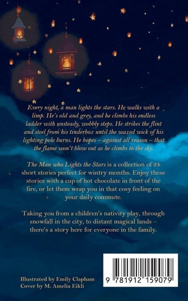 Every night, a man lights the stars. He walks with a limp. He's old and grey, and he climbs his endless ladder with unsteady, wobbly steps. He strikes the flint and steel from his tinderbox until the waxed wick of his lighting pole burns. He hopes - against all reason - that the flame won't blow out as he climbs to the sky. The Man who Lights the Stars is a collection of 24 short stories perfect for wintry months. Enjoy these stories with a cup of hot chocolate in front of the fire, or let them wrap you in that cosy feeling on your daily commute. Taking you from a children's nativity play, through snowfall in the city, to distant magical lands - there's a story here for the whole family.