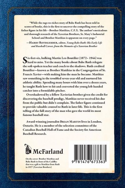 At six-feet-six, the hulking Martin Leo Boutilier (1872-1944) was hard to miss. Yet the many books written about Babe Ruth relegate the soft-spoken teacher and coach to the shadows. Ruth credited Boutilier--known as Brother Matthias in the Congregation of St. Francis Xavier--with making him the man and the baseball player he became. Matthias saw something in the troubled seven-year old and nurtured his athletic ability. Spending many extra hours on the ballfield with him over a dozen years, he taught Ruth how to hit and converted the young left-handed catcher into a formidable pitcher. Overshadowed by a fellow Xavierian brother who was given the credit for discovering the baseball prodigy, Matthias never received his due from the public but didn't complain. Ruth never forgot the father figure who continued to provide valuable counsel in later life. This is the first telling of the full story of the man who gave the world its most famous baseball star.
