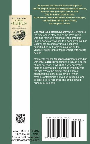 The Man Who Married a Mermaid (1949) tells the picaresque story of a sailor, Père Olifus, who first marries a mermaid, then embarks upon a series of voyages to a semi-mythical Far East where he enjoys various economic opportunities, but remains plagued by the vengeful astral form of the mermaid wife he left behind. Master storyteller Alexandre Dumas teamed up with Paul Lacroix intending to produce a series of magical tales, of which this wry, sarcastic fable of supernaturally-punished infidelity was the first. When the project failed, Lacroix expanded the story into a novella, which remains entertaining as well as intriguing, and deserves to be reckoned one of the flawed classics of its genre.