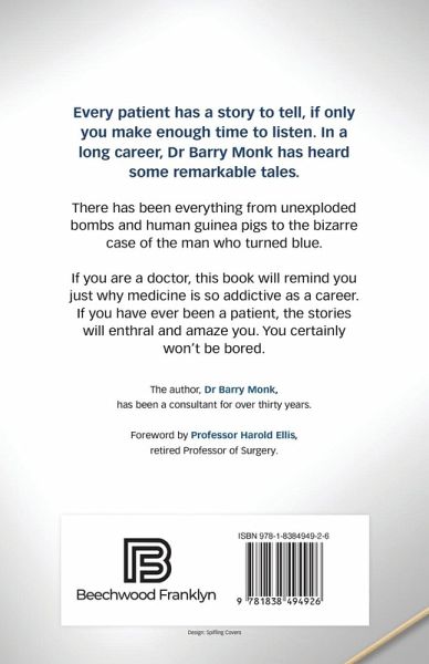 Every patient has a story to tell, if only you make enough time to listen. In a long career as a doctor in the NHS, award winning author Dr Barry Monk has heard some remarkable tales. There has been everything from unexploded bombs and human guinea pigs to the bizarre case of the man who turned blue. If you are a doctor, this book will remind you just why medicine is so addictive as a career. If you have ever been a patient, the stories will enthral and amaze you. You certainly won't be bored.