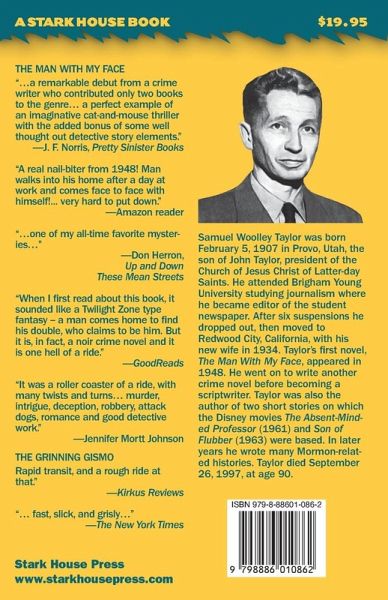 THE MAN WITH MY FACE What do you do when you come home to your wife, pork chops in hand, ready for dinner, only to find another man in your home who looks exactly like you? Who, in fact, claims to be you? Not only that, but your wife and two best friends agree with him. Even your dog doesn't recognize you. And when you call in a cop, you can't find one bit of identification to back up your claim. If you're Chick Graham, you get the hell out of there and try to figure out what's going on. But whoever this guy is who has taken your place, he's done an excellent job. And not only that, he's robbed a million dollars in bonds, and gotten away with it. And now everyone thinks that you are him! THE GRINNING GISMO The letter from Jim asks Hank to come out west to San Francisco and "get close to Clara" but not to let Clara knew who he is. Which is weird enough since Jim is supposed to be dead. But Hank knows the letter had come from Jim because he recognizes the distinctive E's of his old Corona. Then he receives a phone call from a Mr. Smith warning him to stay home or he'll be murdered. Hank decides he has to go. It is soon obvious that he is being followed by a strange couple. Once in San Francisco, he finds Clara, who works for a dentist-she recognizes him immediately. And now he is plagued by blinding headaches, for which the dentist recommends immediate surgery. Something about this whole situation is terribly wrong. If Jim is really still alive.... where the hell is he? And why does he seem to want Hank dead?