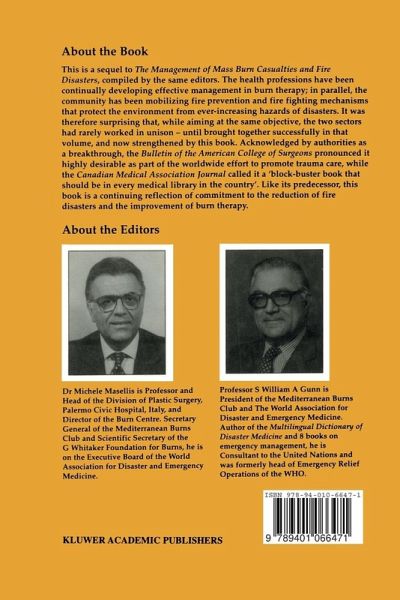 This volume is published with a triple aim: to take a look back over the advances during the ten years of the Mediterranean Burns Club and mark its anniversary; to follow up and strengthen the successful twin ning of burns as a clinical, individual illness problem and fires as a societal, disaster management problem; and to look ahead at the per spectives of burn care and fire prevention in the fast-approaching new century. The occasion also marks the tenth annual presentation of the prestigious G. Whitaker International Burns Prize, to which the Mediterranean Burns Club acts as the scientific fulcrum. The award is now established as the most distinguished recognition in burns science worldwide, and it is gratifying that the contributions of many of the renowned recipients will be found in this book. This is a sequel to The Management of Mass Burn Casualties and Fire Disasters, which contained the Proceedings of the First International Conference on Burns and Fire Disasters. The book and the conference have fully justified the authors' initial concept that burn specialists, con stantly combatting burn disease and promoting rehabilitation of the victims, especially in mass casualty situations, had for too long remained separate from that other essential sector, the fire-fighting authorities and fire prevention systems, whose aim is also the protection of the individual and the promotion of safety. This long overdue synergism has now become reality, and the present volume strengthens this desirable trend.