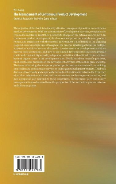 This book discusses theoretically and empirically the trade-off relationship between the frequency of product adaptation activities and the constraints on development resources, and how companies can respond to these constraints. The objective of this book is to identify effective management practices in continuous product development. With the continuation of development activities, companies are required to constantly adapt their products to changes in the external environment. In continuous product development, the development process extends beyond product release, and interaction with the external environment is not limited to the planning stage but occurs multiple times throughout the process. What impact does the multiple adaptation activities have on the product performance as development activities become more continuous, and how to use limited development resources to provide stable and constant high-quality adaptation activities with optimal frequency have become urgent issues in the development sites. To address these research questions, this book focuses primarily on the development activities of the online game industry. The factors that bring about superior product performance are examined by combining case studies and questionnaire surveys on online game development projects. Furthermore, user community management is also discussed from the perspective of the interaction process between multiple user groups.