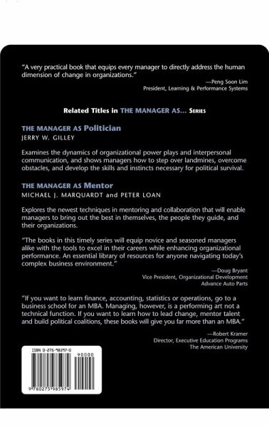 In The Manager as Change Leader, Ann Gilley examines the complexities of change from the manager's perspective, providing readers with the tools to help themselves, their employees, and their colleagues successfully engage in the change efforts that will propel their organizations into the future. In a challenge to traditional approaches-which presume that organizational change will occur once an initiative has been launched-Gilley focuses on the challenges that managers face when others resist change, before, during, and even after the process has been implemented. She explains that resistance to change is natural and inevitable, and offers practical approaches to overcoming organizational inertia, focusing on the specific skills in leadership, management, problem solving, communication, and personal relationships that contribute to successful change. Featuring a wide array of diagnostic and development tools, worksheets, and references, The Manager as Change Leader will become an indispensable resource for any manager faced with leading or navigating a change program, whether large scale or small. To say that businesses today must contend with constant change is an understatement. New technologies, new competitors, new markets, new products, new employees-if your company is not already anticipating their impact you've fallen behind the curve. And yet, as managers acknowledge, and even embrace, change as a reality of organizational life, the success rate of change efforts is perilously low. In The Manager as Change Leader, Ann Gilley examines the complexities of change from the manager's perspective, providing readers with the tools to help themselves, their employees, and their colleagues successfully engage in the change efforts that will propel their organizations into the future.
