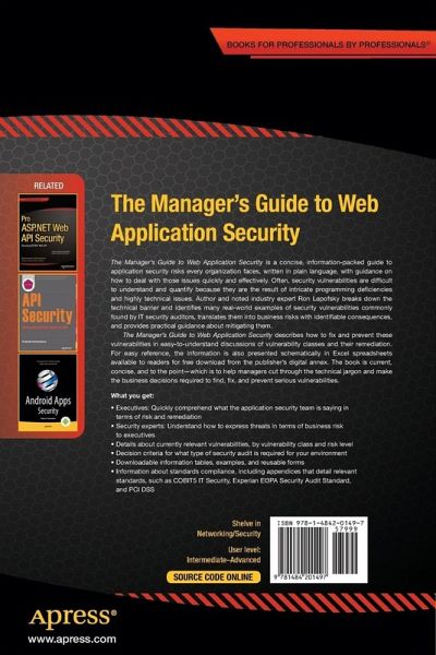 The Manager's Guide to Web Application Security is a concise, information-packed guide to application security risks every organization faces, written in plain language, with guidance on how to deal with those issues quickly and effectively. Often, security vulnerabilities are difficult to understand and quantify because they are the result of intricate programming deficiencies and highly technical issues. Author and noted industry expert Ron Lepofsky breaks down the technical barrier and identifies many real-world examples of security vulnerabilities commonly found by IT security auditors, translates them into business risks with identifiable consequences, and provides practical guidance about mitigating them.