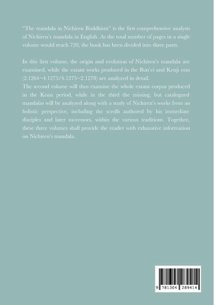 "The mandala in Nichiren Buddhism" is the first comprehensive analysis of Nichiren's mandala in English. As the total number of pages in a single volume would reach 720, the book has been divided into three parts. In this first volume, the origin and evolution of Nichiren's mandala are examined, while the extant works produced in the Bun'ei and Kenji eras (2.1264~4.1275/4.1275~2.1278) are analyzed in detail. The second volume will thus examine the whole extant corpus produced in the Koan period, while in the third the missing, but catalogued mandalas will be analyzed along with a study of Nichiren's works from an holistic perspective, including the scrolls authored by his immediate disciples and later successors, within the various traditions. Together, these three volumes shall provide the reader with exhaustive information on Nichiren's mandala.