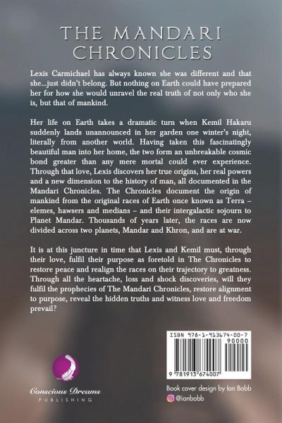 Lexis Carmichael has always known she was different and that she…just didn't belong. But nothing on Earth could have prepared her for how she would unravel the real truth of not only who she is, but that of mankind. Lexis' life on Earth takes a dramatic turn when Kemil Hakaru suddenly lands unannounced in her garden one winter's night from another world. Having taken this fascinatingly beautiful man into her home, the two form an unbreakable cosmic bond greater than any mere mortal could ever experience. Through that love, Lexis discovers her true origins, her real powers and a new dimension to the history of man, all documented in the Mandari Chronicles. The Chronicles document the origin of mankind from the original races of Earth once known as Terra - elemes, hawsers and medians - and their intergalactic sojourn to Planet Mandar. Thousands of years later, the races are now divided across two planets, Mandar and Khron, and are at war. It is at this juncture in time that Lexis and Kemil must, through their love, fulfil their purpose as foretold in The Chronicles to restore peace and realign the races on their trajectory to greatness. Through all the heartache, loss and shock discoveries, will they fulfil The Mandar Chronicles, restore alignment to purpose, reveal the hidden truths and will love and freedom prevail?