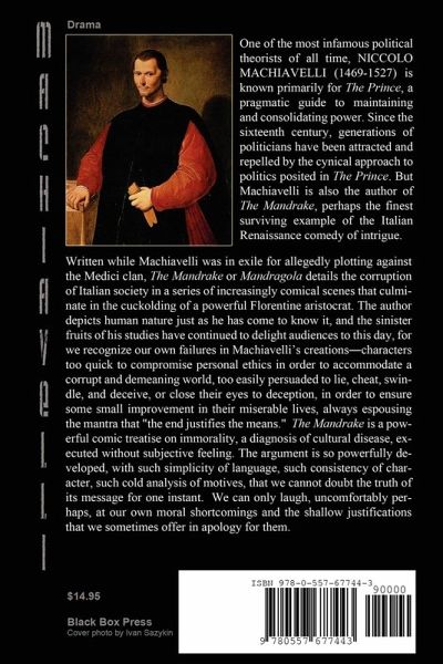 Written while Machiavelli was in exile for allegedly plotting against the Medici clan, "The Mandrake" or "Mandragola" details the corruption of Italian society in a series of increasingly comical scenes that culminate in the cuckolding of a powerful Florentine aristocrat. The author depicts human nature just as he has come to know it, and the sinister fruits of his studies have delighted audiences to this day, for we recognize our own failures in Machiavelli's creations--characters too quick to compromise personal ethics in order to accommodate a corrupt and demeaning world, too easily persuaded to lie, cheat, swindle, and deceive, or close their eyes to deception, in order to ensure some small improvement in their miserable lives, always espousing the mantra that "the end justifies the means." "The Mandrake" is a powerful comic treatise on immorality, a diagnosis of cultural disease, and perhaps the finest surviving example of the Italian Renaissance comedy of intrigue.