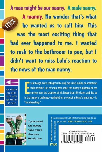 Keats Dalinger is the only boy in a house full of sisters and feels invisible, but things start looking up when the family's new RmannyS (male nanny) enters their lives in this debut novel by a real-life manny.