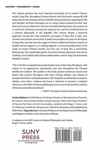 Presents the most important portrayals of the Daoist master Yang Zhu throughout Chinese history, from the Warring States period until today.