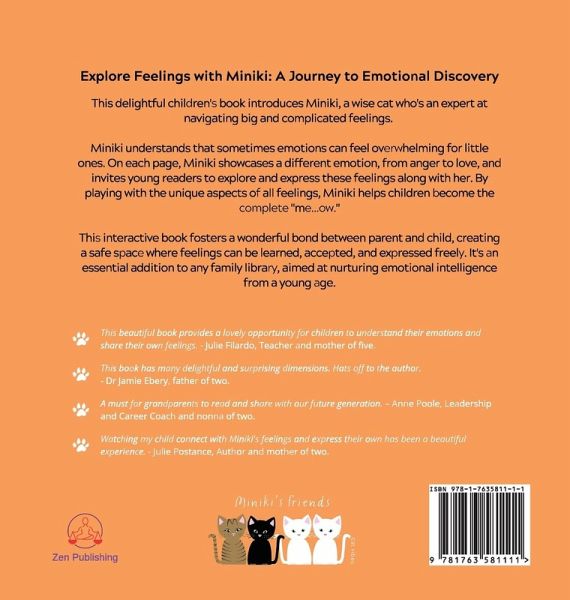 Explore Feelings with Miniki: A Journey to Emotional Discovery This delightful children's book introduces Miniki, a wise cat who's an expert at navigating big and complicated feelings. Miniki understands that sometimes emotions can feel overwhelming for little ones. On each page, Miniki showcases a different emotion, from anger to love, and invites young readers to explore and express these feelings along with her. By playing with the unique aspects of all feelings, Miniki helps children become the complete "me...ow." This interactive book fosters a wonderful bond between parent and child, creating a safe space where feelings can be learned, accepted, and expressed freely. It's an essential addition to any family library, aimed at nurturing emotional intelligence from a young age.