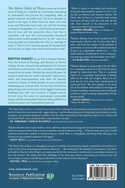 The Many Sides of Peace comes out of thirty years of living in a Catholic lay community, attempting to understand and practice the compelling ideas of gospel-centered nonviolent love. The book attempts to speak to the signs of these times for those who seek peace and liberation from both war and the looming ecological Armageddon. It is a faith based on the revelation of Jesus and the conviction that a love that is nonviolent will save this environmentally threatened planet and its warlike people from an "at risk" status to a more peaceful and sustainable one. This is a message of hope, a "how to live" spiritual manual for human/earth survival that can help create a bold and beautiful world.