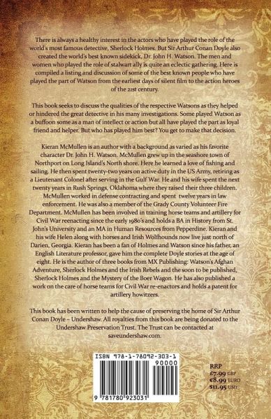 There is always a healthy interest in the actors who have played the role of the world's most famous detective, Sherlock Holmes. But Sir Arthur Conan Doyle also created the world's best known sidekick, Dr. John H. Watson. The men and women who played the role of stalwart ally is quite an eclectic gathering. Here is compiled a listing and discussion of some of the best known people who have played the part of Watson from the earliest days of silent film to the action heroes of the 21st century. All royalties from this book go towards the Undershaw Preservation Trust. Please visit facebook.com/saveundershaw and -like- to show your support.