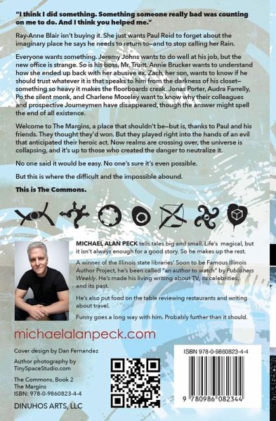 "I think I did something. Something someone really bad was counting on me to do. And I think you helped me." Ray-Anne Blair isn't buying it. She just wants Paul Reid to forget about the imaginary place he says he needs to return to-and to stop calling her Rain. Everyone wants something. Jeremy Johns wants to do well at his job, but the new office is strange. So is his boss, Mr. Truitt. Annie Brucker wants to understand how she ended up back with her abusive ex. Zach, her son, wants to know if he should trust whatever it is that speaks to him from the darkness of his closet-something so heavy it makes the floorboards creak. Jonas Porter, Audra Farrelly, Po the silent monk, and Charlene Moseley want to know why their colleagues and prospective Journeymen have disappeared, though the answer might spell the end of all existence. Welcome to The Margins, a place that shouldn't be-but is, thanks to Paul and his friends. They thought they'd won. But they played right into the hands of an evil that anticipated their heroic act. Now realms are crossing over, the universe is collapsing, and it's up to those who created the danger to neutralize it. No one said it would be easy. No one's sure it's even possible. But this is where the difficult and the impossible abound. This is The Commons.