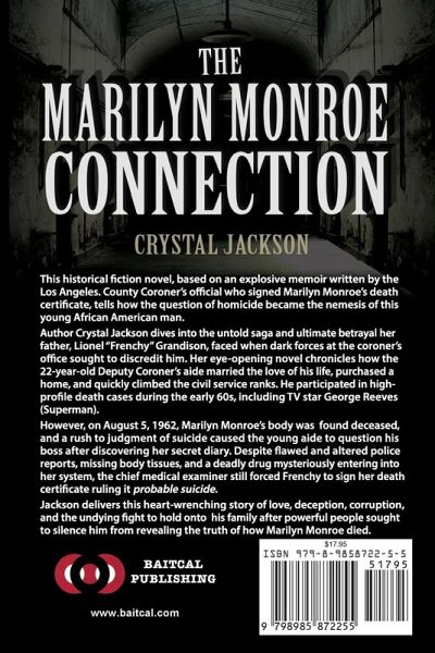 At just 22, Lionel "Frenchy" Grandison had it all; a loving marriage, a new home in Pacoima, and a coveted position at the Los Angeles County Coroner's office. However, his promising life takes a dramatic turn on August 5, 1962, with the death of Hollywood icon Marilyn Monroe. Author Crystal Jackson presents a gripping novel based on the true story of Monroe's controversial death investigation, and the coroner's deputy who risked it all to uncover the truth. "The Marilyn Monroe Connection" powerfully tells his transcendent story and tragic experience with the historic case. The book is a compelling timeline of him meeting and falling in love with the woman of his dreams, earning the job of any Black man's dreams, only to have it all taken away because of what he discovers about Marilyn Monroe. After being unexpectedly assigned her case, Frenchy quickly grows concerned about a rush to label her death as suicide, despite inconsistencies in police reports, protocols, and lab results including a mysterious drug in her system. His subsequent questioning of the official narrative leads to turmoil, and when he pushes back on signing her death certificate his personal troubles begin. Jackson narrative dives into the untold saga and ultimate betrayal he faces when dark forces at the coroner's office plot to discredit him. Her eye-opening novel provides a heart-wrenching account of his epic battle to hold onto the life he built, while influential people seek to silence details about the legendary Hollywood star's death. "The Marilyn Monroe Connection" is the most compelling novel ever written about the legendary Hollywood actress and the official Los Angeles County Coroner's investigation. Drawing from documented facts and intimate conversations with family members, Crystal Jackson sheds new light on Monroe's death and one man's relentless pursuit of truth.