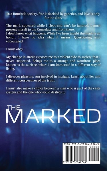 In a futuristic society, fate is decided by genetics, and love is only for the elite. The mark appeared while I slept and can't be ignored. I must present myself to the Consulate and from there... I don't know what happens. While I've been taught the mark is an honor, I have no idea what it means. Questioning isn't encouraged. I must obey. My change in status exposes me to a violent side to society that I never suspected. Brings me to a strange and wondrous place known as the surface, where I am immersed in a different way of living. I discover pleasure. Am involved in intrigue. Learn about lies and different perspectives of the truth. I must also make a choice between a man who is part of the caste system and the one who would destroy it.
