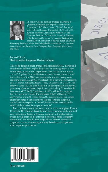 This book analyzes the modern trend in the Japanese M and A market. It reveals from different perspectives the process of convergence to a new monitoring model of the corporation: "the market for corporate control". The book contains a systematic survey of all relevant economic and legal information in this field. Analysis of 17 recent cases of hostile takeover is presented.