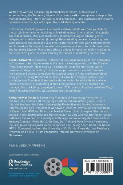 Written for working and aspiring filmmakers, directors, producers and screenwriters, The Marketing Edge for Filmmakers walks through every stage of the marketing process - from concept to post-production - and illustrates how creative decisions at each stage will impact the marketability of a film. In this book, marketing experts Schwartz and MacDonald welcome you behind the curtain into the inner workings of Marketing department at both the studios and independents. They also track films of different budgets (studio, genre, independent and documentary) through the marketing process,…mehr