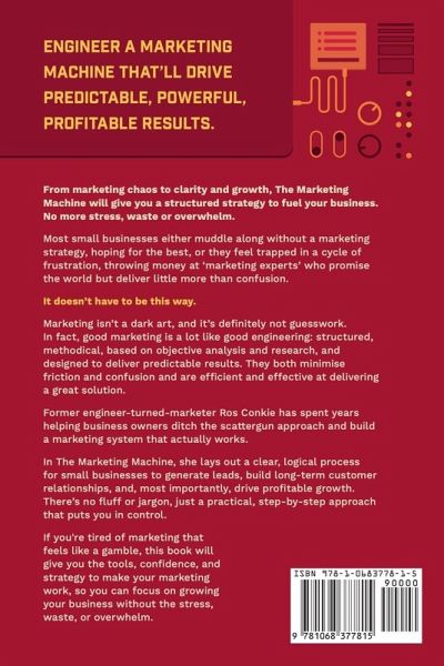 From marketing chaos to clarity and growth, The Marketing Machine will give you a structured strategy to fuel your business. No more stress, waste or overwhelm. Most small businesses either muddle along without a marketing strategy, hoping for the best, or they feel trapped in a cycle of frustration, throwing money at 'marketing experts' who promise the world but deliver little more than confusion. It doesn't have to be this way. Marketing isn't a dark art, and it's definitely not guesswork. In fact, good marketing is a lot like good engineering: structured, methodical, based on objective analysis and research, and designed to deliver predictable results. They both minimise friction and confusion and are efficient and effective at delivering a great solution. Former engineer-turned-marketer Ros Conkie has spent years helping business owners ditch the scattergun approach and build a marketing system that actually works. In The Marketing Machine, she lays out a clear, logical process for small businesses to generate leads, build long-term customer relationships, and, most importantly, drive profitable growth. There's no fluff or jargon, just a practical, step-by-step approach that puts you in control. If you're tired of marketing that feels like a gamble, this book will give you the tools, confidence, and strategy to make your marketing work, so you can focus on growing your business without the stress, waste, or overwhelm.