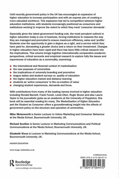 This volume brings together internationally comparative academic perspectives, critical accounts and empirical research to fully explore the issues and experiences of education as a commodity.