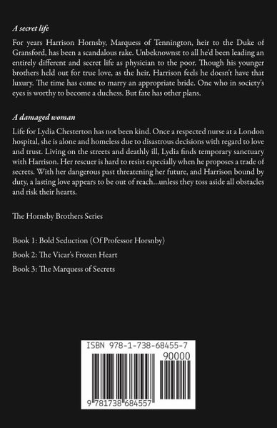 A secret life ¿ Harrison Hornsby, Marquess of Tennington, heir to the Duke of Gransford, has been a scandalous rake for years. Unbeknownst to all, he'd been leading an entirely different and secret life as a physician to the poor. Though his younger brothers held out for true love, as the heir, Harrison feels he doesn't have that luxury. The time has come to marry an appropriate bride-one who, in society's eyes, is worthy of becoming a duchess. But fate has other plans. A damaged woman Life for Lydia Chesterton has not been kind. Once a respected nurse at a London hospital, she is alone and homeless due to disastrous decisions concerning love and trust. Lydia lives on the streets and is deathly ill and finds temporary sanctuary with Harrison. Her rescuer is hard to resist, especially when he proposes a trade of secrets. With her dangerous past threatening her future and Harrison bound by duty, a lasting love appears out of reach-unless they toss aside all obstacles and risk their hearts.