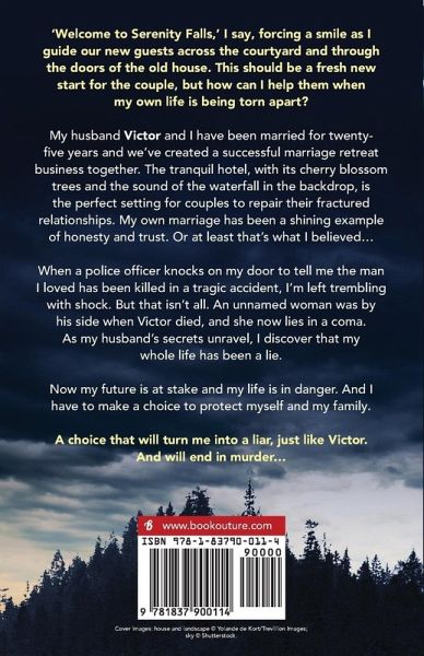 'Welcome to Serenity Falls,' I say, forcing a smile as I guide our new guests across the courtyard and through the doors of the old house. This should be a fresh new start for the couple, but how can I help them when my own life is being torn apart? My husband Victor and I have been married for twenty-five years and we've created a successful marriage retreat business together. The tranquil hotel, with its cherry blossom trees and the sound of the waterfall in the backdrop, is the perfect setting for couples to repair their fractured relationships. My own marriage has been a shining example of honesty and trust. Or at least that's what I believed... When a police officer knocks on my door to tell me the man I loved has been killed in a tragic accident, I'm left trembling with shock. But that isn't all. An unnamed woman was by his side when Victor died, and she now lies in a coma. As my husband's secrets unravel, I discover that my whole life has been a lie. Now my future is at stake and my life is in danger. And I have to make a choice to protect myself and my family. A choice that will turn me into a liar, just like Victor. And will end in murder... What readers are saying about The Marriage Retreat: 'Holy hell... What an absolute mind-blowing thriller. I cannot put into enough words how phenomenal this was... Like nothing was as simple as it seems, there was so many possible options that I didn't even see them coming... page-turning.' @book_brilliance_xo, ¿¿¿¿¿ 'EXCELLENT... kept me glued to my kindle!!!!... WOW!!!!... This book I will NOT FORGET for a long time, definitely will be telling my friends about it.' Goodreads Reviewer, ¿¿¿¿¿ 'A fantastic gripping dark thriller which had me up late reading needed to know how it was going to end... intriguing... excellent... A fantastic gripping story.' Goodreads Reviewer, ¿¿¿¿¿ 'A wild ride and one that kept me on my toes with reveal after reveal... I was gripped throughout... I encourage you to pick up if you enjoy psychological mysteries full of twists.' Goodreads Reviewer, ¿¿¿¿¿ 'I raced through this book. Gripping from the start and everything that a psychological thriller should be. Don't take my word for it, read it! You wont' be disappointed... Awesome.' Goodreads Reviewer, ¿¿¿¿¿ 'Brilliant... Will hook you from the beginning until the very end... Loved it.' Goodreads Reviewer, ¿¿¿¿¿