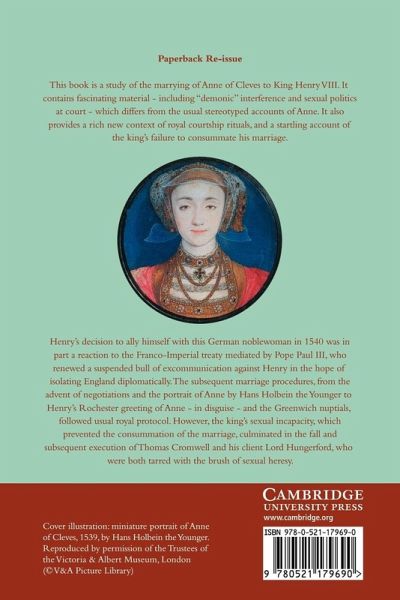 This book is a study of the marrying of Anne of Cleves to King Henry VIII. It contains fascinating material - including 'demonic' interference and sexual politics at court - which differs greatly from the usual stereotyped accounts of Anne. It also provides a rich context of royal courtship rituals, and a startling account of the king's failure to consummate his marriage. Contrary to the standard view, Henry's marriage procedures, from the advent of negotiations and the portrait of Anne by Hans Holbein the Younger to Henry's Rochester greeting of Anne - in disguise - and the Greenwich nuptials, all followed usual royal protocol. But the king's sexual incapacity, which prevented the consummation of the marriage, culminated in the fall and subsequent execution of Thomas Cromwell and his client Lord Hungerford, who were both tarred with the brush of sexual heresy.