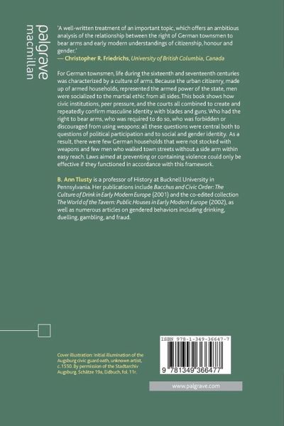 'A well-written treatment of an important topic, which offers an ambitious analysis of the relationship between the right of German townsmen to bear arms and early modern understandings of citizenship, honour and gender.' - Christopher R. Friedrichs, University of British Columbia, Canada