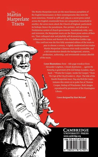 The Martin Marprelate tracts are the most famous pamphlets of the English Renaissance; to their contemporaries they were the most notorious. Printed in 1588 and 1589 on a secret press carted across the English countryside from one sympathetic household to another, the seven tracts attack the Church of England, particularly its bishops (hence the pseudonym, Mar-prelate), and advocate a Presbyterian system of church government. Scandalously witty, racy, and irreverent, the Marprelate tracts are the finest prose satires of their era. Their colloquial style and playfully self-dramatizing manner influenced the fiction and theatre of the Elizabethan Golden Age. This text was the first fully annotated edition of the tracts to appear in almost a century. A lightly modernized text makes Martin Marprelate's famous voice easily accessible, and a full introduction details the background, sources, production, authorship, and seventeenth-century afterlife of the tracts.