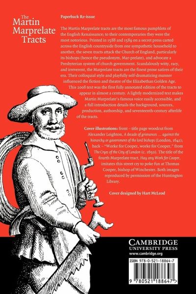 The Martin Marprelate tracts are the most famous pamphlets of the English Renaissance; to their contemporaries they were the most notorious. Printed in 1588 and 1589 on a secret press carted across the English countryside from one sympathetic household to another, the seven tracts attack the Church of England, particularly its bishops (hence the pseudonym, Mar-prelate), and advocate a Presbyterian system of church government. Scandalously witty, racy, and irreverent, the Marprelate tracts are the finest prose satires of their era. Their colloquial style and playfully self-dramatizing manner influenced the fiction and theatre of the Elizabethan Golden Age. This text was the first fully annotated edition of the tracts to appear in almost a century. A lightly modernized text makes Martin Marprelate's famous voice easily accessible, and a full introduction details the background, sources, production, authorship, and seventeenth-century afterlife of the tracts.