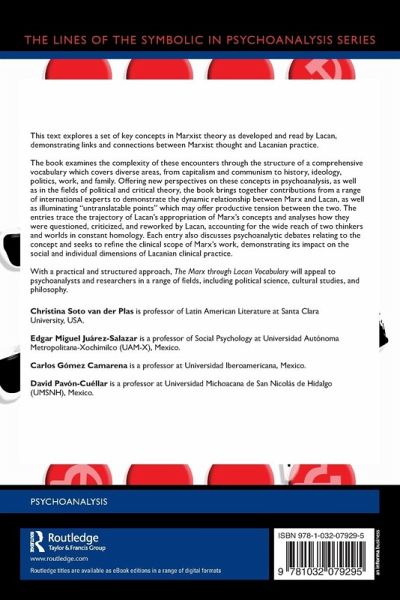 'The Marx Through Lacan Vocabulary is a remarkable and precious tool for all those interested in exploring Lacan's interpretation, appropriation and transformation of some of Marx's key concepts, as well as an invaluable guide to the many ways in which Lacan's sustained engagement with Marx's text shaped his own thought. As such, it argues convincingly for the need to think together political and libidinal economy, social production and the unconscious, labour relations and language. This collection is also a testimony to the vitality of Lacanian, Marxist and post-Marxist studies in the so-called Global South, as well as Europe and North America. Scholars, students and psychoanalysts will use it for years to come'.