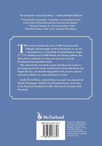 Chronicles the story of 400 young men who willingly and knowingly sacrificed themselves to save the Continental Army at the Battle of Long Island on August 27, 1776. This exhaustively researched account introduces the reader to the background of the battle and the stories of the individuals who fought that day, and includes biographies with extensive quoted material in addition to a general historic overview.