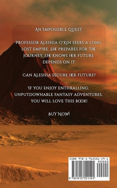 An Impossible Quest Professor Aleshia O'Kin seeks a long lost empire. She prepares for the journey. She knows her future depends on it. Can Aleshia secure her future? If you enjoy enthralling, unputdownable fantasy adventures, you will love this book! BUY NOW!¿