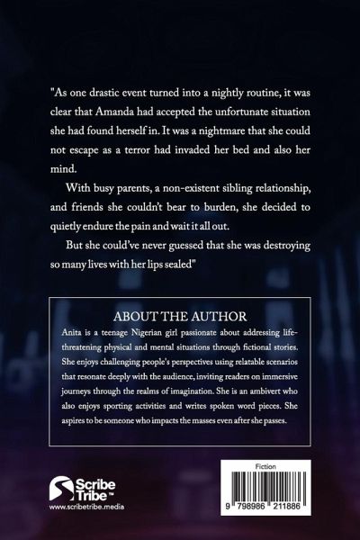 As one drastic event turned into a nightly routine, it was clear that Amanda had accepted the unfortunate situation she had found herself in. It was a nightmare that she could not escape as a terror had invaded her bed and also her mind. With busy parents, a non-existent sibling relationship, and friends she couldn't bear to burden, she decided to quietly endure the pain and wait it all out. But she could've never guessed that she was destroying so many lives with her lips sealed