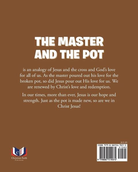 The Master and the Pot is an analogy of Jesus and the cross and God's love for all of us. As the master poured out his love for the broken pot, so did Jesus pour out His love for us. We are renewed by Christ's love and redemption. In our times, more than ever, Jesus is our hope and strength. Just as the pot is made new, so are we in Christ Jesus!