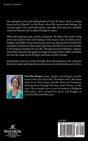 The redemptive voice and healing hands of God, The Master Artist, can draw hearts back to Himself-to His Heart, where His creation truly belongs. He can heal captive, lost, and broken hearts, and make them into new, sanctified vessels for Himself, able to reflect His light to others. Filled with inspiring words, artwork, and poetry, The Master Artist seeks to help artists and creatives who need healing in their hearts. God, the Master Artist, Designer, and Maker of your heart sees you, loves you, and cares for you as His own masterpiece. He desires to draw, paint, and create a new life in you as you surrender to His purposes and plans for your life. Through personal testimonies, scripture, and creative expression, this guide encourages you to get to know, follow, and reflect the One who made you for His glory and honor, for all of eternity. Intended for artists in a variety of media, this study ministers to the souls who feel broken inside and helps them in their journey towards wholeness in Christ.