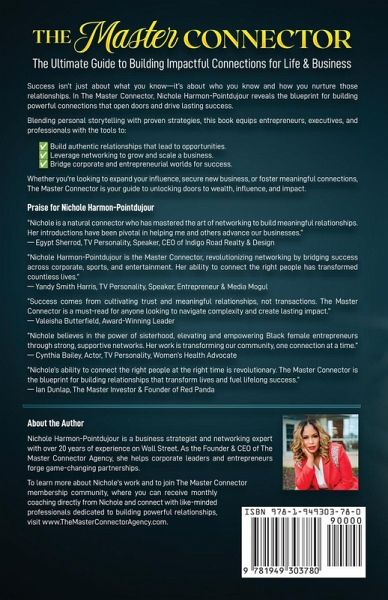 From the inner city to the inner circles, Nichole Harmon-Pointdujour's remarkable journey exemplifies how meaningful relationships can redefine your path and elevate your success. Drawing on over 20 years of experience on Wall Street and as the Founder and CEO of The Master Connector Agency, Nichole shares her proven strategies for building impactful connections that drive personal and professional growth. In this memoir, part actionable guide, Nichole reveals how she broke barriers, built a vast network of influential relationships, and leveraged them to create transformative opportunities for herself and others. Whether you're an entrepreneur looking to scale your business, a corporate executive seeking strategic partnerships, or simply someone aiming to enhance your networking skills, this book provides a blueprint to help you harness the power of connections. Through compelling personal stories and actionable insights, Nichole guides readers on: Building authentic relationships that lead to game-changing opportunities. Bridging gaps between industries, cultures, and communities to foster collaboration. Using strategic networking to drive innovation and business growth. Navigating challenges with resilience and purpose to achieve long-lasting success. Nichole's expertise, vast network, and passion for community development have made her a sought-after thought leader featured in many major media outlets. The Master Connector is not just a guide-it's a testament to the power of relationships in shaping our lives and businesses. Whether you're starting out or looking to level up, this book will inspire you to build your own inner circles, unlock opportunities, and achieve your highest potential.