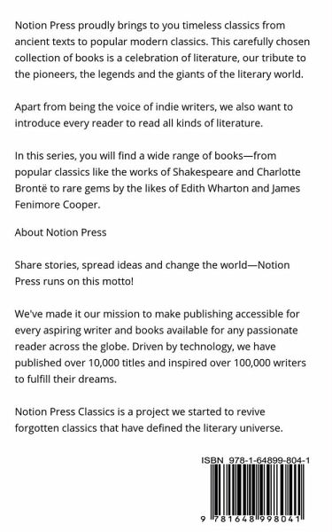 Notion Press proudly brings to you timeless classics from ancient texts to popular modern classics. This carefully chosen collection of books is a celebration of literature, our tribute to the pioneers, the legends and the giants of the literary world. Apart from being the voice of indie writers, we also want to introduce every reader to read all kinds of literature. In this series, you will find a wide range of books-from popular classics like the works of Shakespeare and Charlotte Brontë to rare gems by the likes of Edith Wharton and James Fenimore Cooper.