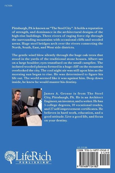 Pittsburgh, PA is known as "The Steel City". It holds a reputation of strength, and dominance in the architectural designs of the high-rise buildings. Three rivers of raging force rip through the surrounding mountains with occasional cliffs and wooded areas. Huge steel bridges arch over the rivers connecting the North, South, East, and West side districts. The gentle wind blew silently through the huge oak trees that stood in the yards of the traditional stone houses. Albert sat on a large boulder; eyes transfixed on the small campfire. The isolated wooded plateau formed in a huge cliff on the mountain overlooked the city. The cool night air was still upon him as the morning sun began to rise. He was determined to figure his life out. The world seemed like it was against him. Deep down inside, he knew he would master his destiny.