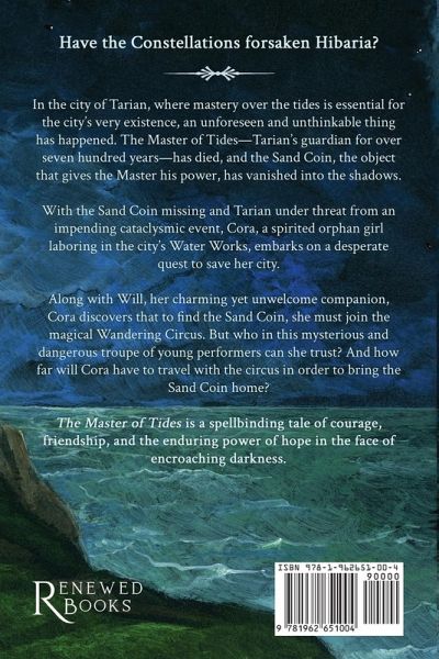 In the city of Tarian, where mastery over the tides is essential for the city's very existence, an unforeseen and unthinkable thing has happened. The Master of Tides-Tarian's guardian for over seven hundred years-has died, and the Sand Coin, the object that gives the Master his power, has vanished into the shadows. With the Sand Coin missing and Tarian under threat from an impending cataclysmic event, Cora, a spirited orphan girl laboring in the city's Water Works, embarks on a desperate quest to save her city. Along with Will, her charming yet unwelcome companion, Cora discovers that to find the Sand Coin, she must join the magical Wandering Circus. But who in this mysterious and dangerous troupe of young performers can she trust? And how far will Cora have to travel with the circus in order to bring the Sand Coin home? The Master of Tides is a spellbinding tale of courage, friendship, and the enduring power of hope in the face of encroaching darkness.