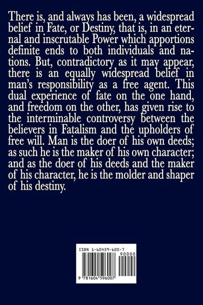 There is, and always has been, a widespread belief in Fate, or Destiny, that is, in an eternal and inscrutable Power which apportions definite ends to both individuals and nations. But, contradictory as it may appear, there is an equally widespread belief in man's responsibility as a free agent. This dual experience of fate on the one hand, and freedom on the other, has given rise to the interminable controversy between the believers in Fatalism and the upholders of free will. Man is the doer of his own deeds; as such he is the maker of his own character; and as the doer of his deeds and the maker of his character, he is the molder and shaper of his destiny.